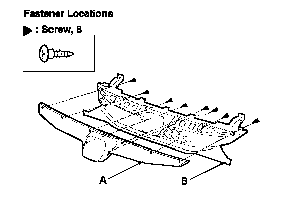 3. Remove the screws, then separate the front grille molding (A) and the front grille base (B).