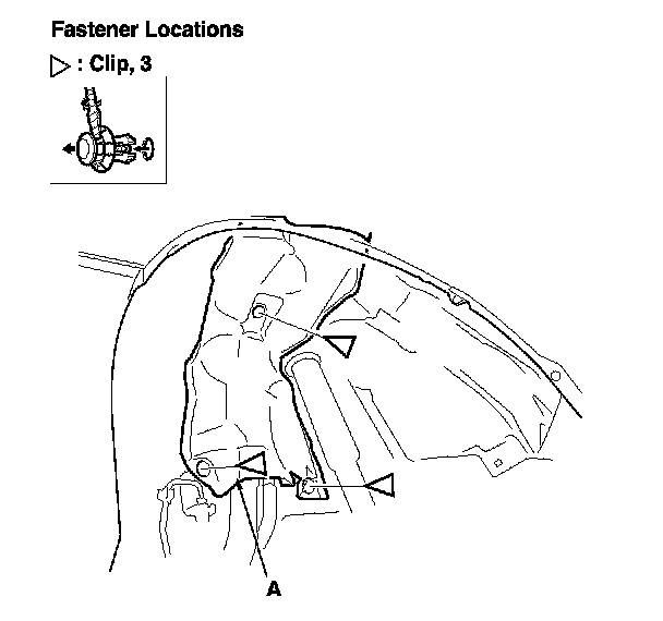 2. Detach the clips, then remove the fuel pipe protector (A).