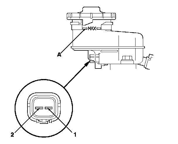 - Fill the reservoir with brake fluid to the MAX (upper) level (A). With the float up, there should be no continuity.