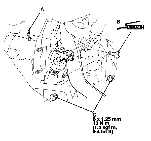 6. Remove the brake booster mounting nuts (C).