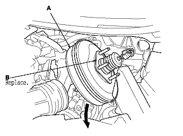 NOTE: Use the new brake booster gasket (B) during reassembly.