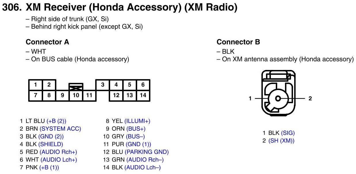 View 306 - XM Receiver Connector View (Honda Accessory) (XM Radio)
