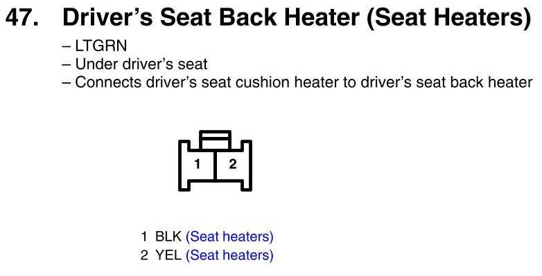 View 47 - Driver's Seat Back Heater Connector View (Seat Heaters)