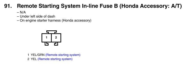 View 91 - Remote Starting System In-line Fuse B Connector View (Honda Accessory: A/T)