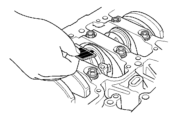 8. If the plastigage measures too wide or too narrow, remove the upper half of the bearing, install a new, complete bearing with the appropriate color code(s), and recheck the clearance. Do not file, shim, or scrape the bearings or the caps to adjust clearance.