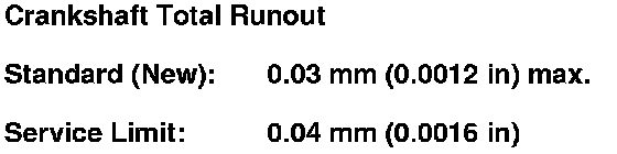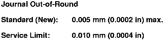 8. Measure the runout on all main journals. Rotate the crankshaft two complete revolutions. The difference between measurements on each journal must not be more than the service limit.