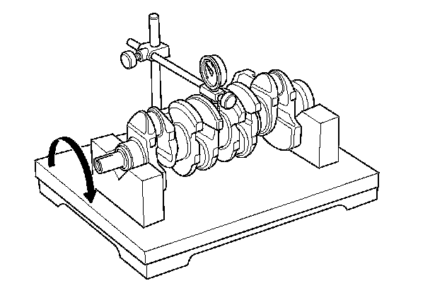 7. Check the total runout with the crankshaft supported on V-blocks.