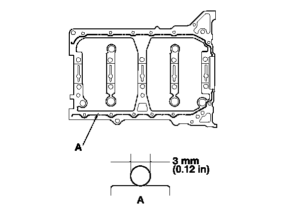 - Apply a 3 mm (0.12 in) diameter bead of liquid gasket along the broken line (A).