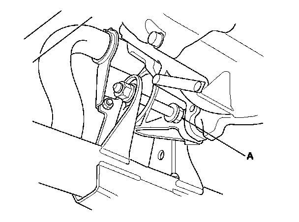3. Remove the ground cable (A), then remove the side engine mount bracket (B).
