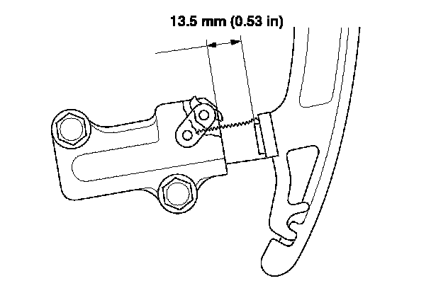 16. Measure the tensioner rod length between the tensioner body and bottom of the flat surface section on the tensioner rod. If the length is more than the service limit, replace the cam chain and the oil pump chain.