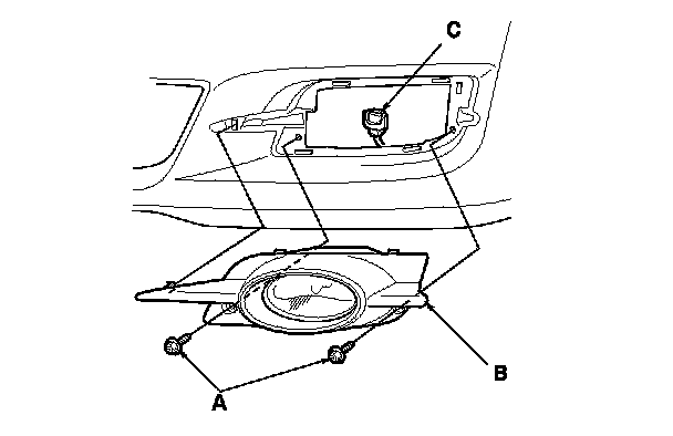 1. Remove the mounting screws (A) from the fog light (B).