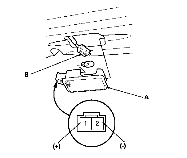 4. Check for continuity between terminals No. 1 (+) and No. 2 (-). There should be continuity. If there is no continuity, check the bulb. If the bulb is OK, replace the light.