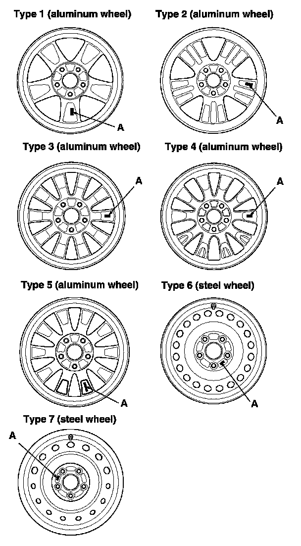 - Use only wheels that have a "TPMS" stamp (A) on the inside of the aluminum wheels, and the outside of the steel wheels.