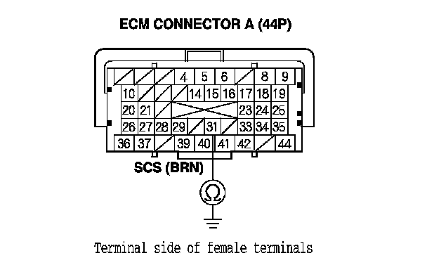 7. Check for continuity between ECM connector terminal A31 and body ground.