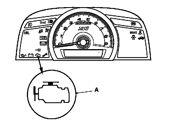 2. If the MIL stays on, connect the HDS to the data link connector (DLC) (A) located under the driver's side of the dashboard.