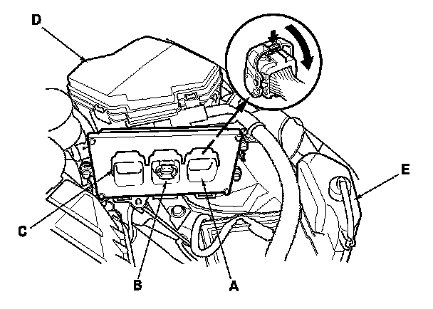 NOTE: The ECM is part of the immobilizer system. If you replace the ECM, you must use the HDS to instruct the new ECM and the immobilizer-keyless control unit to recognize each other's unique serial code.