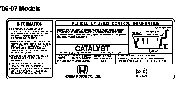THIS VEHICLE CONFORMS TO U.S. EPA TIER 2 BIN 5 REGULATIONS APPLICABLE TO 2007 MODEL YEAR NEW PASSENGER CARS AND CALIFORNIA REGULATIONS APPLICABLE TO 2007 MODEL YEAR NEW LEV II LEV PASSENGER CARS.