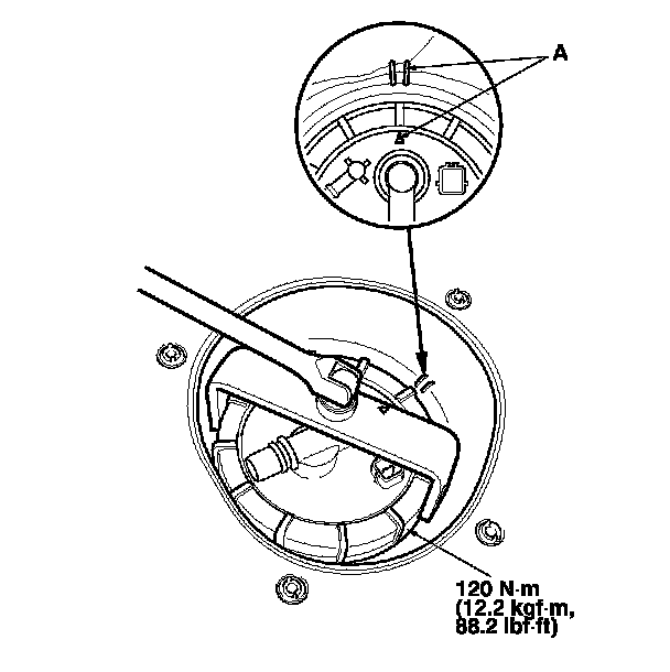 NOTE: To prevent a fuel leak, check the base gasket, visually or by hand, to make sure it is not pinched.