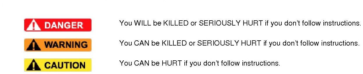 - Safety Messages -preceded by a safety alert symbol and one of three signal words, DANGER, WARNING, or CAUTION.