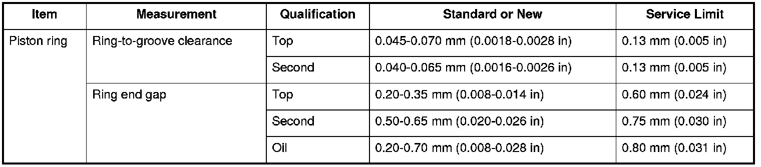 Piston Ring Specifications