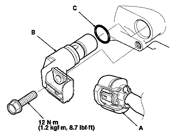 3. Install the parts in the reverse order of removal with a new O-ring (C).