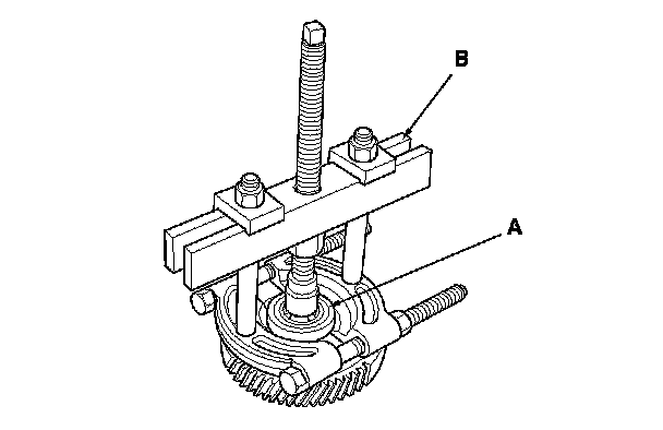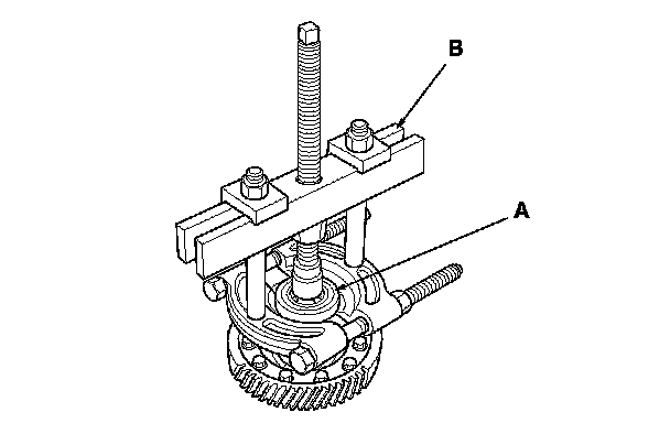 2. Remove the carrier bearings (A) using a commercially available bearing puller (B).