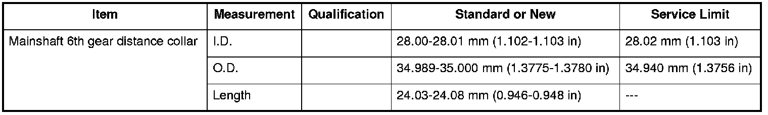 Mainshaft 6th Gear Distance Collar Specifications (6M/T)