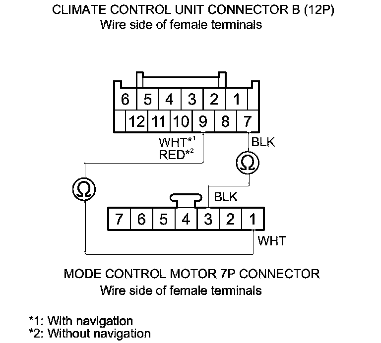 Check for loose wires or poor connections at climate control unit connectors A (28P), B (12P), and at the mode control motor 7P connector. If the connections are good, substitute a known-good climate control unit, and recheck. If the symptom/indication goes away, replace the original climate control unit; with navigation Climate Control Unit Removal/Installation (With Navigation), without navigation Climate Control Unit Removal/Installation (Without Navigation).�