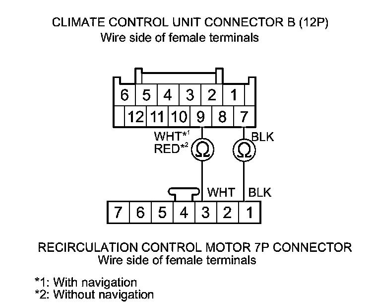 Check for loose wires or poor connections at climate control unit connectors A (28P), B (12P), and at the recirculation control motor 7P connector. If the connections are good, substitute a known-good climate control unit, and recheck. If the symptom/indication goes away, replace the original climate control unit; with navigation Climate Control Unit Removal/Installation (With Navigation), without navigation Climate Control Unit Removal/Installation (Without Navigation).�