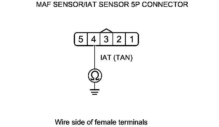 10. Check for continuity between MAF sensor/IAT sensor 5P connector terminal No. 4 and body ground.