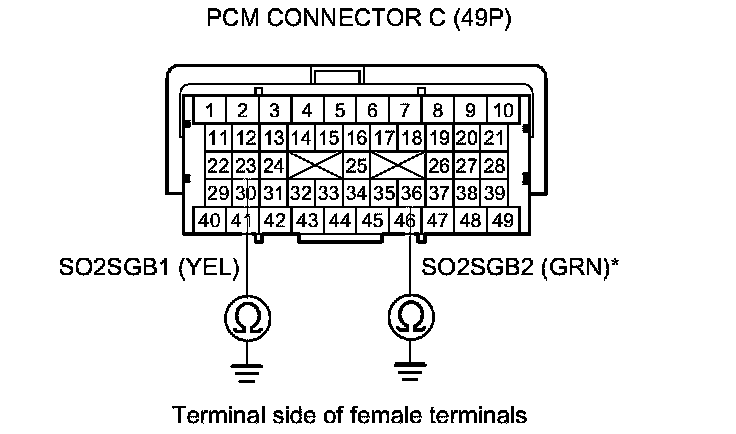 17. Check for continuity between PCM connector terminal C23 (C36)* and body ground.