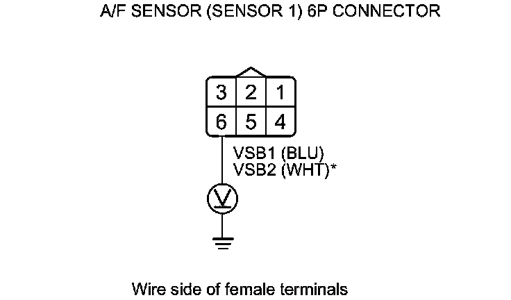 12. Measure the voltage between A/F sensor (Sensor 1) 6P connector terminal No. 6 and body ground.