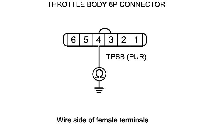 9. Check for continuity between throttle body 6P connector terminal No. 4 and body ground.