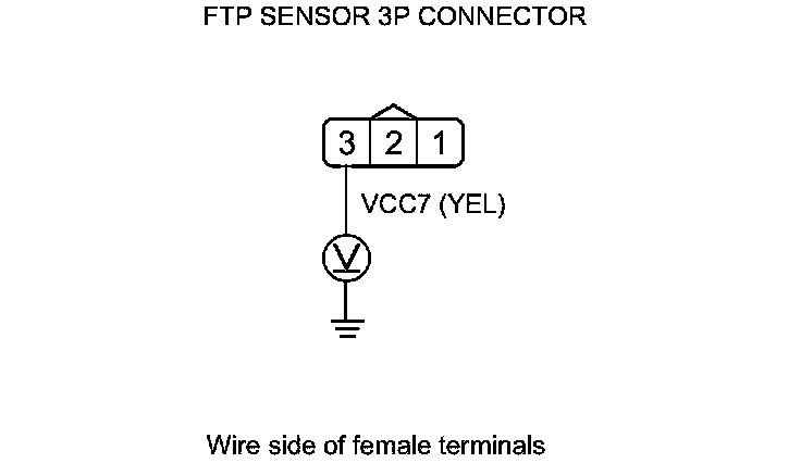14. Measure the voltage between FTP sensor 3P connector terminal No. 3 and body ground.