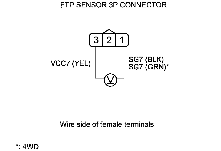 15. Measure the voltage between FTP sensor 3P connector terminals No. 1 and No. 3.