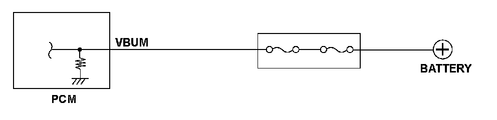 The powertrain control module (PCM) constantly draws power from VBUM to maintain the back-up ram. If the VBUM voltage is a set value for a specified time period, the PCM detects a malfunction and stores a DTC.