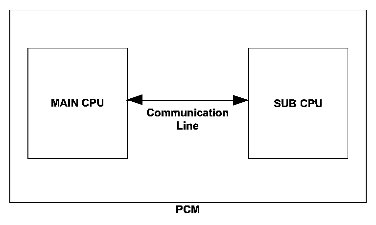 When a malfunction occurs in the communication line between the main CPU and the sub CPU in the powertrain control module (PCM), no monitor signals from the sub CPU are detected for a set time, or abnormal signals are detected for a set time, the PCM detects a malfunction and stores a DTC.