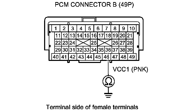 If the PCM was updated, substitute a known-good PCM, then recheck. If the PCM was substituted, check for poor connections or loose terminals at the PCM and the following parts, then go to step 1.