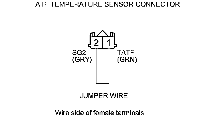 5. Connect a jumper wire between ATF temperature sensor connector terminal No. 1 and body ground.