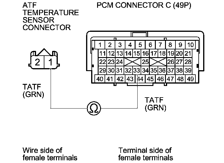 17. Check for continuity between PCM connector terminal C33 and ATF temperature sensor connector terminal No. 1.