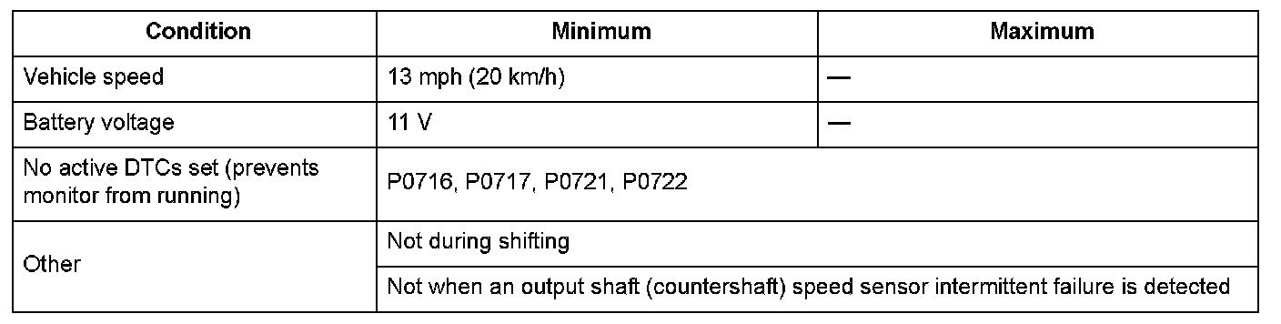 The input shaft (mainshaft) speed sensor is attached to the outside of the transmission housing. The input shaft (mainshaft) speed sensor generates a pulsing signal according to the speed of the idler gear on the input shaft (mainshaft). Using that signal, the powertrain control module (PCM) determines the speed of the input shaft (mainshaft). If no pulses occur with the input shaft (mainshaft) rotating, the PCM detects a malfunction that may be caused by an open, a temporary open, or a short to ground. Based on the fluctuation of the vehicle speed measured by the input shaft (mainshaft) speed sensor, the PCM detects a malfunction and stores a DTC.