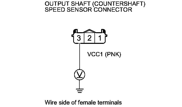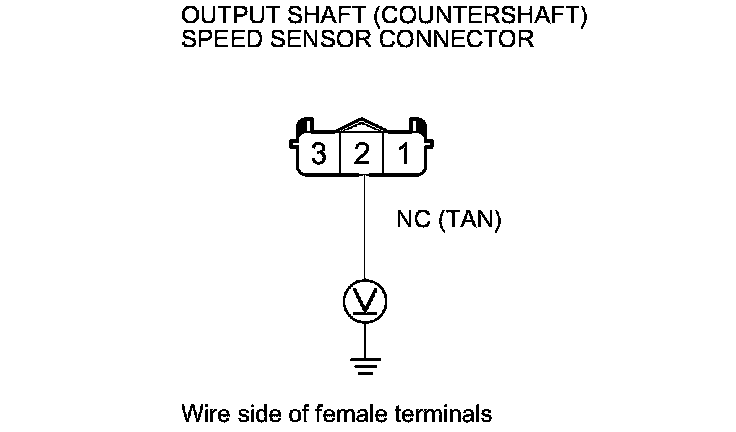 8. Measure the voltage between output shaft (countershaft) speed sensor connector terminal No. 3 and body ground.