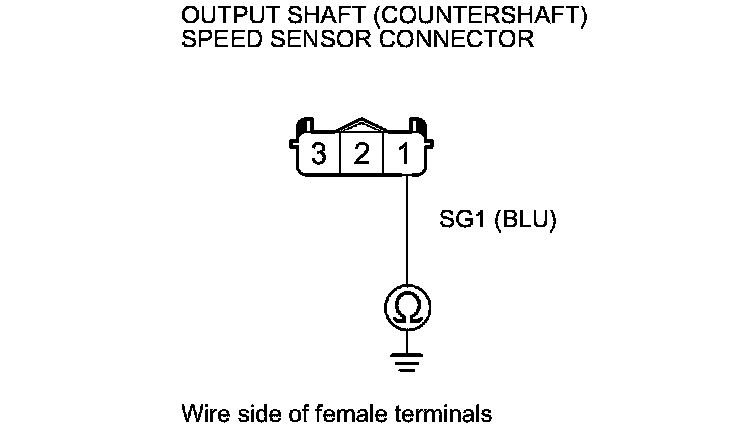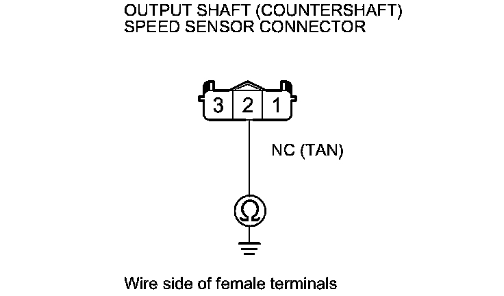 11. Check for continuity between output shaft (countershaft) speed sensor connector terminal No. 1 and body ground.