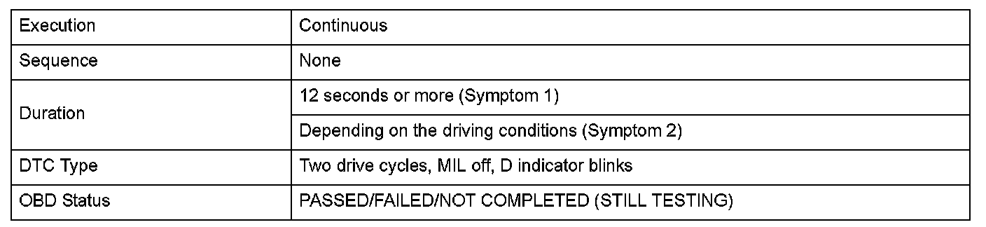 Monitor Execution, Sequence, Duration, DTC Type, OBD Status
