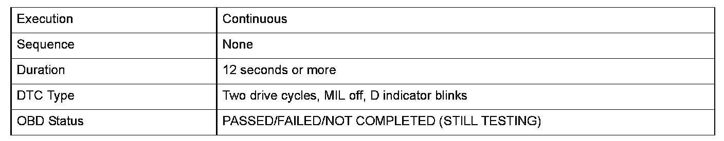 Monitor Execution, Sequence, Duration, DTC Type, OBD Status