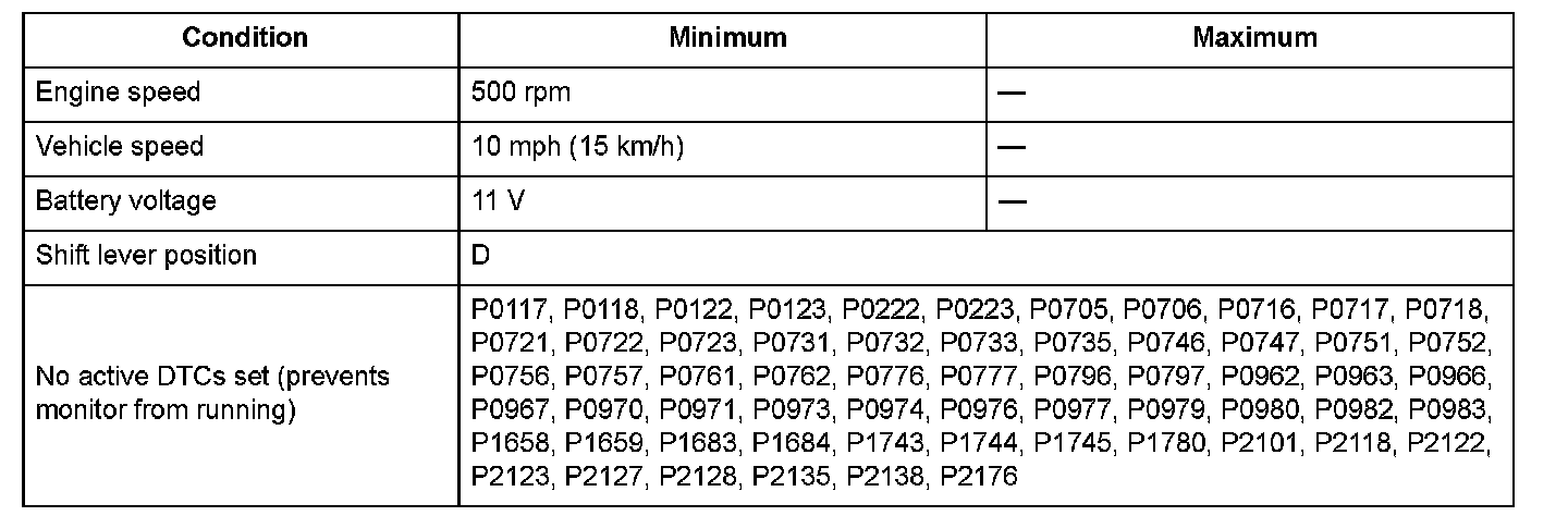 Conditions for setting the DTC