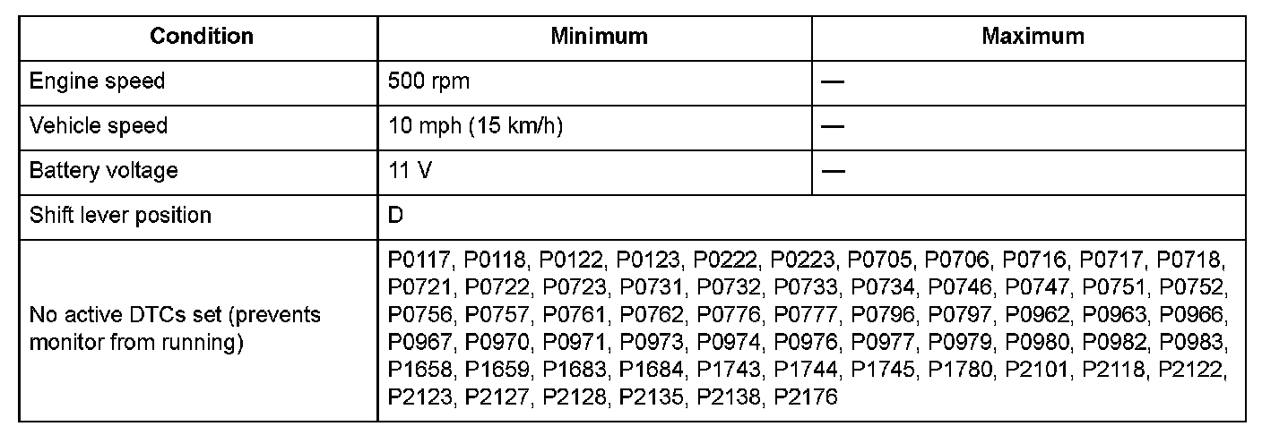 Conditions for setting the DTC