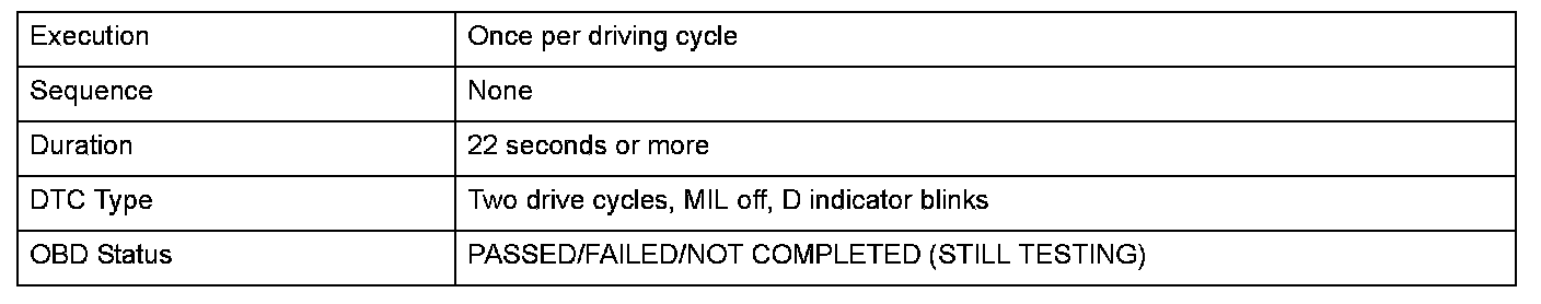 Monitor Execution, Sequence, Duration, DTC Type, OBD Status