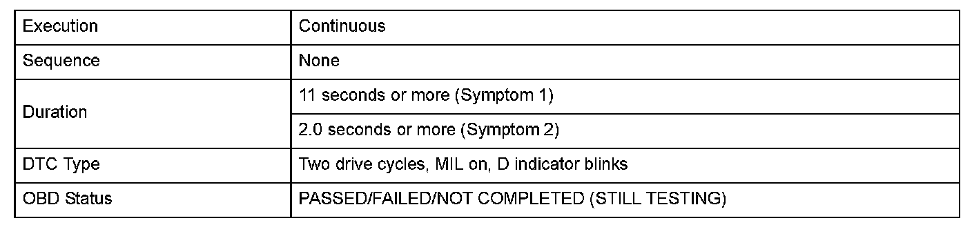 Monitor Execution, Sequence, Duration, DTC Type, OBD Status