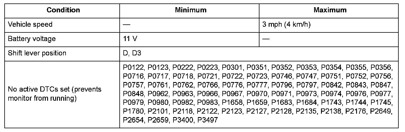 Conditions for setting the DTC